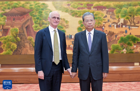 9月23日,全国人大常委会委员长赵乐际在北京会见美国国会众议员代表团史密斯一行。新华社记者 高洁 摄 新华社北京9月23日电(记者王慧慧)全国人大常委会委员长赵乐际23日在北京会见美国国会众议员